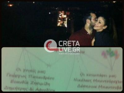 Αρχικά είχε έρθει στο φως της δημοσιότητας το προσκλητήριο του γάμου των δύο νέων ενώ είχε οριστεί να γίνει η τελετή την Κυριακή 6 Ιουλίου στο εκκλησάκι που βρίσκεται στο λιμανάκι της Χερσονήσου στην Κρήτη. Απ’ ότι φαίνεται τα σχέδια του ζευγαριού άλλαξαν τελευταία στιγμή.