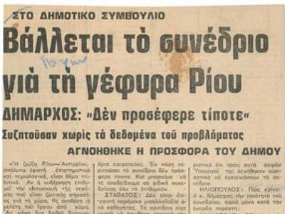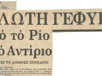Με την ευκαιρία της συμπλήρωσης 10 χρόνων λειτουργίας της γέφυρας Ρίου – Αντιρρίου «Χαρίλαος Τρικούπης» (Αύγουστος, 2004-2014), ας θυμηθούμε μερικές στιγμές, εμβληματικές ίσως, από την προϊστορία του εγχειρήματος ή της ίδιας της γεωγραφίας του τόπου. Ένα λησμονημένο συνέδριο του Πανεπιστημίου Πατρών και μια ξεχασμένη ναυμαχία του Πελοποννησιακού Πολέμου. Στιγμές που έχουν να κάνουν με τον βαθύτερο συμβολισμό της «Γέφυρας» και ό,τι αυτός συνειρμικά μπορεί να σημαίνει για τον καθένα…