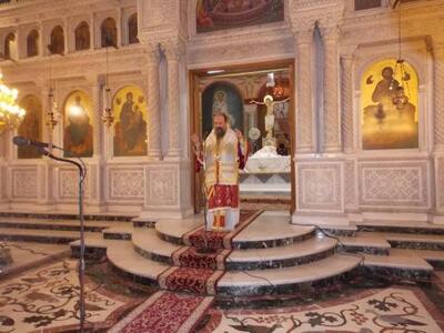 "Τό πολυπληθές ἐκκλησίασμα μετά συγκλονισμοῦ καρδίας, ἄκουσε γιά μιά ἀκόμη φορά ἀπό τό στόμα τοῦ Ἐπισκόπου του, τά περί τῆς φρικτῆς, μαρτυρικῆς τελευτῆς τοῦ Ἱεράρχου τῆς Σμύρνης, Ἁγίου Χρυσοστόμου, τόν ὁποῖο κατακρεούργησε καί κομμάτιασσε ἡ λυσσαλέα μανία τῶν Τούρκων, στίς 9 Σεπτεμβρίου ( 27 Αὐγούστου Π.Η.) κατά τήν καταστροφή τῆς Μικρασίας τό 1922.