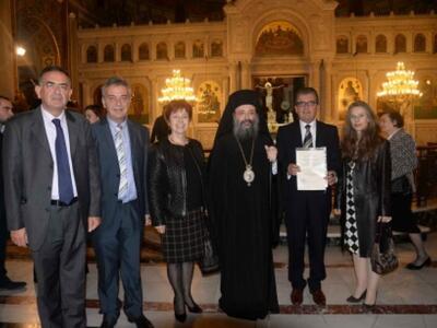 Πριν από την ομιλία και την επίδοση των ευεργετηρίων γραμμάτων, τελέστηκε στις 6 το απόγευμα της Δευτέρας 17/11/2014, πανηγυρικός εσπερινός, χοροστατούντος του Θεοφιλεστάτου Επισκόπου Κερνίτσης κ. Χρυσάνθου.
