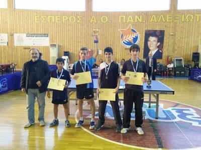 Στην κατηγορία των παίδων ο Γεράσιμος Χατζηλυγερούδης παίζοντας πολύ ωραίο πινγκ πονγκ έφτασε έως τον τελικό. Εκεί ηττήθηκε από τον κατά 2 χρόνια μεγαλύτερό του Κων/νο Λυκοστράτη (Βέροια) με 3-1. Νωρίτερα είχε καταβάλλει τους Δημήτρη Στάμου (Ελευσίνα) και Νίκο Βλαχάκη (Καρέας), ο οποίος ήταν και το 1ο φαβορί της διοργάνωσης. Ο Θέμης Αδριανός συνεχίζοντας τις καλές εμφανίσεις που έχει φέτος κατέκτησε την 13η θέση. Ο Γιώργος Καραβότας παίζοντας για πρώτη φορά σε επίσημους αγώνες έδειξε καλά στοιχεία και μάλιστα πέτυχε και νίκη στους αγώνες παρηγοριάς.