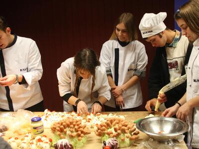 Οι σπουδαστές του τμήματος Σεφ βρέθηκαν στο κατάμεστο από κόσμο αμφιθέατρο του ΑΤΕΙ Πατρών και δημιούργησαν μαζί με τα παιδιά του EEEK -που για μερικές ώρες μεταμορφώθηκαν σε σεφ-λιχουδιές που μετά προσφέρθηκαν στους καλεσμένους.