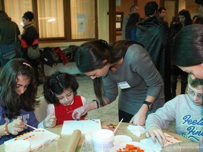 Οι σπουδάστριες του τμήματος προσχολικής αγωγής έδειξαν την αγάπη τους και την τρυφερότητά τους στα παιδιά δημιουργώντας μαζί τους καραβάκια από ψηφιδωτά σε καμβάδες.