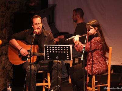 Μελοποιημένα τραγούδια της συλλογής από τον εξαίρετο συνθέτη Διονύση Γράψα παρουσίασε ομάδα νέων μουσικών από το νησί. Στο πιάνο ήταν ο Διονύσης Σκλαβενίτης στην κιθάρα ο Βαλεντίνος Σταματέλος και στο φλάουτο η Έλλη Χαλκιοπούλου. Τραγούδησαν με ιδιαίτερη επιτυχία και με καταπληκτικές φωνές ο Βαλεντίνος Σταματέλος καί η Έλλη Χαλκιοπούλου.