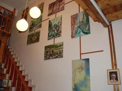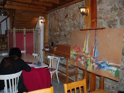 Τριγύρω παντού τα έργα του Θεόδωρου Άννινου, από έργα ζωγραφικής μέχρι σκίτσα και βεβαίως στη διάθεση του κοινού το συγγραφικό του έργο, ποιήματα, εκδόσεις, κείμενα...