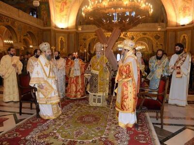 Στὸ μέσον τοῦ Ἱεροῦ Ναοῦ εἶχε τοποθετηθεῖ ὁ Σταυρὸς καὶ ἡ Κάρα τοῦ Ἁγίου Ἀποστόλου Ἀνδρέου.