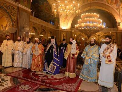Μὲ λαμπρότητα καὶ ἱερὰ κατάνυξη ἐτελέσθη ἡ Θεία Λειτουργία στὸν μεγαλοπρεπῆ Ἱερὸ Ναὸ τοῦ Ἁγίου Ἀποστόλου Ἀνδρέου Πατρῶν, προεξάρχοντος τοῦ Σεβασμιωτάτου Μητροπολίτου Ναυπάκτου καὶ Ἁγίου Βλασίου κ. Ἱεροθέου καὶ συλλειτουργούντων, τοῦ Σεβασμιωτάτου Μητροπολίτου Πατρῶν κ. Χρυσοστόμου καὶ τοῦ Θεοφιλεστάτου Ἐπισκόπου Κερνίτσης κ. Χρυσάνθου.