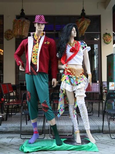 Στο καρναβαλικό κλίμα των ημερών βάζουν τους κατοίκους αλλά και τους επισκέπτες της Πάτρας, αρκετές από τις καφετέριες του κέντρου της πόλης οι οποίες «εκθέτουν» υπαίθρια τις στολές των πληρωμάτων που βγάζουν στο καρναβάλι.
