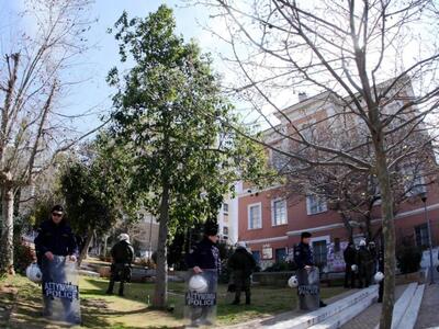 Ισχυρές αστυνομικές δυνάμεις έχουν περικυκλώσει το υπό κατάληψη κτίριο της Νομικής Σχολής, στην οδό Σόλωνος, στο κέντρο της Αθήνας το πρωί της Τετάρτης.