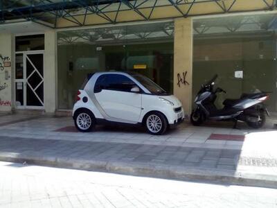 Ο οδηγός του αυτοκινήτου, επέλεξε - άγνωστο για ποιο λόγο και με ποιο σκεπτικό- να αφήσει το όχημα πάνω στο πεζοδρόμιο και μπροστά στην πόρτα καταστήματος προς ενοικίαση...