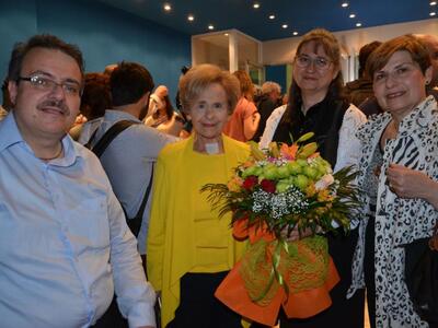 Ο Αλεξάντερ Πέιν έχει κοντά του στην επίσκεψη του στα πάτρια εδάφη την αγαπημένη του μητέρα Πέγκυ (Ευαγγελία) η οποία έλκει την καταγωγή της από την Λιβαδειά και την Σύρο. Κομψή, ευγενέστατη και παρά ένα πρόβλημα στην ομιλία της (λόγω ενός προβλήματος στον λαιμό) η Πέγκυ Πέιν κοντά στα 90 της χρόνια, όπως ακούσαμε, σε πολλές στιγμές έκλεβε την παράσταση. Ο Αλέξανδρος Πέιν της είχε αφιερώσει το 2012 το Όσκαρ του από την ταινία «The Descendants – Οι Απόγονοι» με πρωταγωνιστή τον Τζορτζ Κλούνει ενώ χθες βράδυ στο Αίγιο της χάρισε το μπουκέτο με λουλούδια που του έδωσαν μαζί με τα πολλά δώρα, ανάμεσα τους και ένα πιστό αντίγραφο μίας αρχαίας πυξίδας από το Αρχαιολογικό Μουσείο του Αιγίου. «Έχουμε κι άλλα δώρα», έλεγε συνεχώς η κυρία Τσουκαλά (του έδωσαν κι ένα λεύκωμα με την ιστορία του Αιγίου) ενώ ο Δήμαρχος Αιγιαλείας Θανάσης Παναγόπουλος μίλησε για την ευαισθησία και την ανθρωπιά των φιλμ του Αλεξάντερ Πέιν.