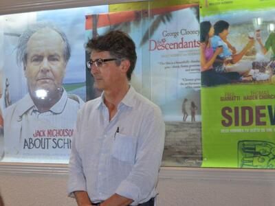 «Είναι καταπληκτικό όλο αυτό απόψε», είπε ο Πέιν ανεβαίνοντας στην σκηνή του Δημοτικού κινηματογράφου Απόλλων του Αιγίου όπου έγινε η τιμητική εκδήλωση και η προβολή της «Νεμπράσκα» των 6 υποψηφιοτήτων για Όσκαρ, παραγωγής 2013.