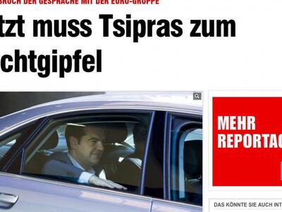 Η Bild αποτυπώνει το τι συμβαίνει στις Βρυξέλλες, με τον Αλέξη Τσίπρα «να διαπραγματεύεται ξανά με τους Θεσμούς, συναντώντας τους επικεφαλής αυτών», υπογραμμίζοντας, παράλληλα, πως «η συνεδρίαση των ΥΠΟΙΚ δεν ήταν επιτυχής».