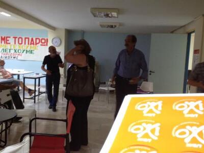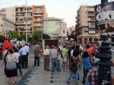 - Άρχισαν σιγά σιγά να συγκεντρώνονται οι πολίτες στην πλατεία Γεωργίου για να πανηγυρίσουν για το δημοψήφισμα.