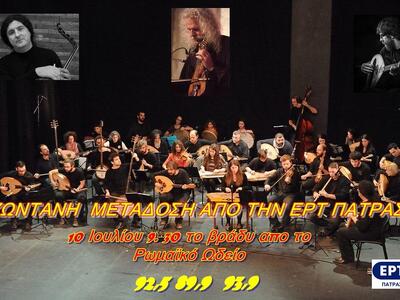 Η ΕΡΤ Πάτρας στο πλαίσιο συνεργασίας με τον Πολιτιστικό Οργανισμό του Δήμου Πατρέων, θα μεταδώσει απευθείας, από το Ρωμαϊκό Ωδείο την Παρασκευή 10 Ιουλίου στις 9.30 το βράδυ, την 30μελή Ορχήστρα του Δημοτικού Ωδείου της Πάτρας που παρουσιάζει την “Αστική Λαϊκή Μουσική της Κρήτης : Ταμπαχανιώτικα τραγούδια” υπό τη Διεύθυνση του Διευθυντή της Ευγένιου Βούλγαρη.