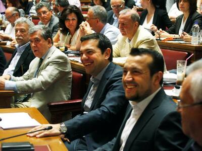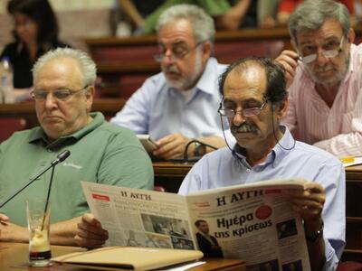 Συνεχίζεται η συνεδρίαση της κοινοβουλευτικής ομάδας και της πολιτικής γραμματείας του ΣΥΡΙΖΑ, υπό τον πρωθυπουργό Αλέξη Τσίπρα, στην αίθουσα της Γερουσίας. "Εφοδιασμένοι" με laptop, βεντάλιες και εφημερίδες οι βουλευτές, για να... αντέξουν.