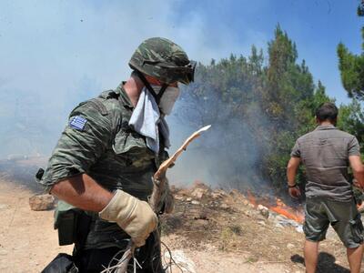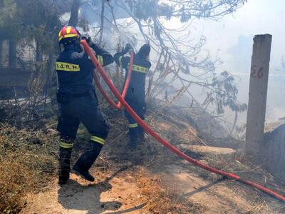 Στο σημείο έχουν σπεύσει 30 πυροσβέστες με 10 οχήματα, ενώ επιχειρούν και δυο ελικόπτερα.