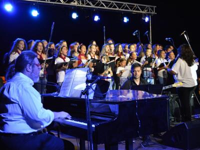Τρυφερές και συγκινητικές στιγμές χάρισαν στο κοινό τα μέλη της Δημοτικής Παιδικής-Νεανικής Χορωδίας Αιγιαλείας που, υπό τη διεύθυνση της Βασιλικής Νάσση, συνόδεψαν τη Φωτεινή Δάρρα στα τραγούδια του Δημήτρη Παπαδημητρίου “Η Αγάπη”, "Λόγια και φιλιά" και "Στου καιρού τη ζυγαριά ή Τρέχει το νερό". Με το τραγούδι τους τα παιδιά κέρδισαν επάξια το χειροκρότημα τόσο του κοινού, όσο και του συνθέτη και της ερμηνεύτριας.