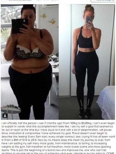 «Είμαι πλέον και επίσημα η μισή απ’ ότι ήμουν πριν 11 μήνες! Από 169 έφτασα πλέον τα 83,85 κιλά και δεν μπορώ καν σας περιγράψω με λόγια πως νιώθω γι’ αυτό το κατόρθωμα! Είχα θέσει έναν στόχο που τότε έμοιαζε τελείως ουτοπικός αλλά επέμεινα και με πολλή αποφασιστικότητα, θέληση, έμπνευση και συμβιβασμούς τα κατάφερα! Η λέξη «περήφανη» είναι πολύ λίγη να περιγράψει αυτό που νιώθω! Κάθε πρωινό ξύπνημα από τις 5, κάθε άσκηση και δάκρυ, το άξιζαν!