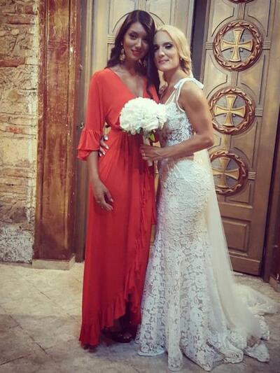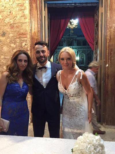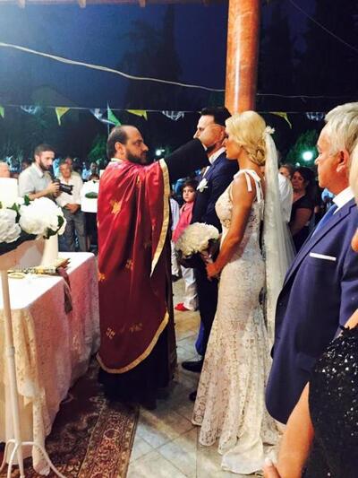 Όσο για την ανθοδέσμη, αυτή δεν πετάχτηκε από τη νύφη, αλλά παραδόθηκε στην κουμπάρα Νίκη Λαμπροπούλου, ιδιοκτήρια της Υdra Premiere.