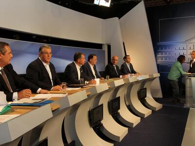 Πριν λίγα λεπτά ξεκίνησε το ντιμπέιτ των πολιτικών αρχηγών.Οι πολιτικοί αρχηγοί προετοιμάστηκαν στα γραφεία του προέδρου της ΕΡΤ Διονύση Τσακνή, του διευθύνοντος συμβούλου Λάμπη Ταγματάρχη και ακολούθως στα γραφεία υπευθύνων της ΕΡΤ.