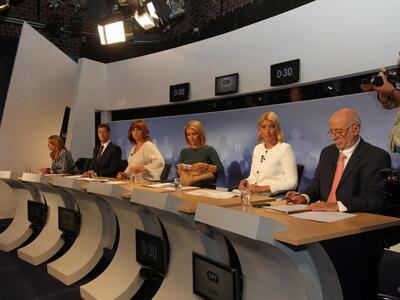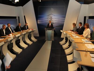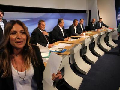 Οι έξι δημοσιογράφοι που βρίσκονται μέσα στην αίθουσα είναι οι: Όλγα Τρέμη (MEGA), Σία Κοσιώνη (ΣΚΑΙ), Μαρία Χούκλη (ΑΝΤ1), Μάρα Ζαχαρέα (STAR), Αντώνης Σρόιτερ (ALPHA) και Μάκης Γιομπαζολιάς (ΕTV).
