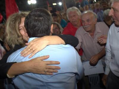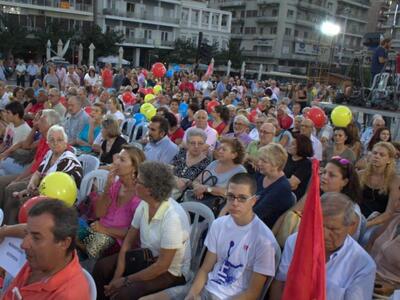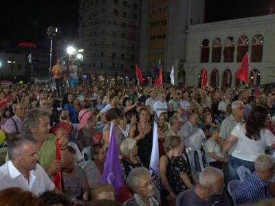 Αυτή η συγκέντρωση είναι αντάξια της Πάτρας των μεγάλων δημοκρατικών παραδόσεων, είναι το δικό σας μεγάλο όχι του παλιού καθεστώτος. Αυτούς που διώξατε από την πόρτα τα Γενάρη δε θα επιτρέψουμε να γυρίσουν από το παράθυρο τώρα. Στις κάλπες της Κυριακής θα ψηφίσουμε πάλι Όχι, στο πιο παλιό από το παλιό που είναι ο κ. Μεϊμαράκης και η ΝΔ. Όχι στην Ελλάδα της συντήρησης και της ολιγαρχίας.