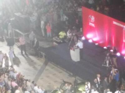20:55 Έφθασε πριν από λίγο στην πλατεία Γεωργίου ο πρόεδρος του ΣΥΡΙΖΑ Αλέξης Τσίπρας. Ο πρώην πρωθυπουργός έγινε δεκτός με ενθουσιασμό και συνθήματα από τους εκατοντάδες συγκεντρωμένους. Να σημειωθεί ότι λόγω, της συγκέντρωσης, η κυκλοφορία των οχημάτων έχει διακοπή στην οδό Κορίνθου από το ύψος της Γούναρη