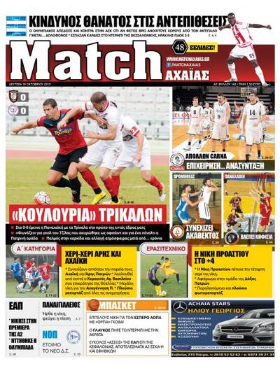 Ρεπορτάζ της εφημερίδας Match Αχαϊας - Δείτε το σημερινό πρωτοσέλιδο