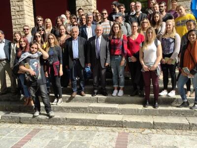 Στα Καλάβρυτα, βρίσκονται, από την περασμένη Κυριακή, δύο ομάδες, από είκοσι, περίπου, τεταρτοετείς φοιτητές, η κάθε μία, από την Αρχιτεκτονική Σχολή του Πανεπιστημίου Πατρών και από την Αρχιτεκτονική Σχολή του Πανεπιστημίου του Μπίμπεραχ (Biberach) της Γερμανίας, μαζί με τους καθηγητές τους, οι οποίοι επισκέφθηκαν, ξεναγήθηκαν και απέδωσαν φόρο τιμής στον Τόπο Θυσίας και στο Δημοτικό Μουσείο του Καλαβρυτινού Ολοκαυτώματος, περπάτησαν το «μονοπάτι» της Εκτέλεσης (από εκεί όπου οδηγήθηκαν, στις 13-12-1943, άνδρες των Καλαβρύτων, στο Λόφο του Καπή, όπου εκτελέσθηκαν, άνανδρα, από τους ναζί κατακτητές), ενημερώθηκαν και συζήτησαν με το Δήμαρχο Καλαβρύτων, κ. Γιώργο Λαζουρά, τον βοηθό Δημάρχου, κ. Νίκο Μαγκαφά, με μέλη του Διοικητικού Συμβουλίου του Δημοτικού Μουσείου και πολίτες των Καλαβρύτων, για τα τραγικά γεγονότα της γερμανικής θηριωδίας, της 13-12-1943 και περιηγήθηκαν και ξεναγήθηκαν, στην πόλη των Καλαβρύτων.