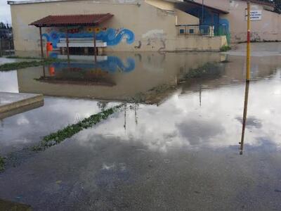 Ο χώρος του σχολικού συγκροτήματος Σαγαιΐκων μετατράπηκε σε λίμνη.