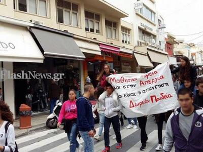"Μη μας στερείτε το μέλλον" και "Αυτοί που μας κλέψαν τα βιβλία από τα χέρια, μας κατηγορούν ότι μείναμε αδιάβαστοι" είναι μερικά από τα συνθήματα στα πανό μαθητών που συμμετέχουν στις κινητοποιήσεις στα Χανιά.