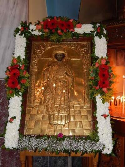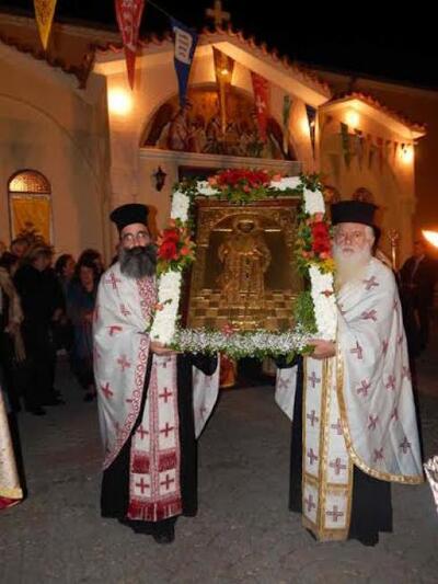 Μετά τον Εσπερινό έγινε η λιτάνευση της Ιεράς Εικόνος του Αγίου Ιωάννου του Χρυσοστόμου, στους δρόμους του χωριού.