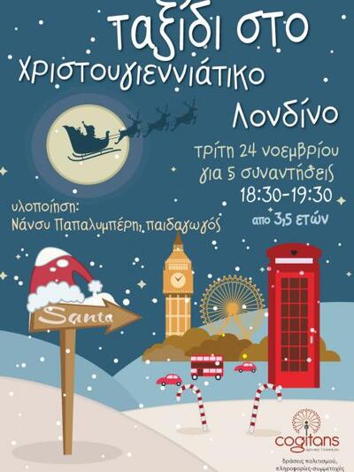 Μία νέα δράση ετοίμασε η Cogitans για τους μικρούς μας φίλους, με τίτλο "Ταξίδι στο Χριστουγεννιάτικο Λονδίνο", μαζί με την παιδαγωγό Νάνσυ Παπαλυμπέρη.
