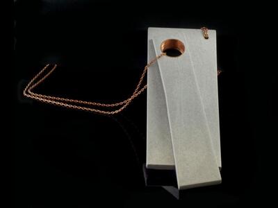 Εμπνευσμένη από βασικά γεωμετρικά σχήματα, η αρχιτέκνων Έλενα Καπομπασοπούλου συνδυάζει καινοτόμο σχεδιασμό και κατασκευαστικές τεχνικές, φέρνοντας στη ζωή μια αισθητική ποιότητα ενός υλικού που μέχρι σήμερα θεωρούνταν στοιχειώδες μόνο για το σχεδιασμό κτιρίων. Kαι κάπως έτσι το αρχιτεκτονικό κόσμημα από τσιμέντο γεννιέται.
