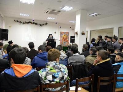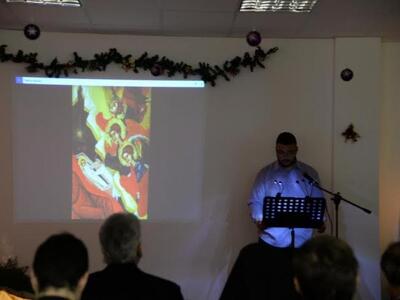 Μετά τήν Θεία Λειτουργία στήν αἴθουσα τελετῶν τοῦ Ἐκκλησιαστικοῦ Λυκείου πραγματοποιήθηκε ἑόρτια ἐκδήλωση γιά τά Χριστούγεννα, στήν ὁποία οἱ μαθητές παρουσίασαν ποιήματα, κείμενα ἀπό Ἐκκλησιαστικούς καί ἄλλους συγγραφεῖς, ὕμνους ἐπίκαιρους καί διαφάνειες, δίδοντας μέ τόν δικό τους ζωντανό, νεανικό καί βαθειά ἐσωτερικό τρόπο τό μήνυμα τῆς μεγάλης ἑορτῆς τῶν Χριστουγέννων , ἕνα μήνυμα ἀγάπης, ἐλπίδας καί οὐσιαστικῆς ζωῆς, ἐν Χριστῷ Ἰησοῦ.