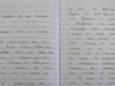 Στην ίδια ενότητα του βιβλίου, πρόσθεσε, υπήρξε μία άσκηση που ζητείτο από τα παιδιά να γράψουν ένα γράμμα προς τον δήμαρχο για έναν υποτιθέμενο καταυλισμό που υπήρχε στην περιοχή και να ζητήσουν να βελτιωθούν οι συνθήκες ζωής των μεταναστών. «Τα παιδιά αποφάσισαν να γράψουν αυτό το γράμμα για τους πρόσφυγες που φτάνουν καθημερινά στην Ελλάδα, για τα παιδιά που χάνονται, που ζουν κάτω από άθλιες συνθήκες», αναφέρει η κ. Γκούτη και θέλησαν να δημοσιευτεί στις 18 Δεκεμβρίου, Παγκόσμια Ημέρα των Μεταναστών.