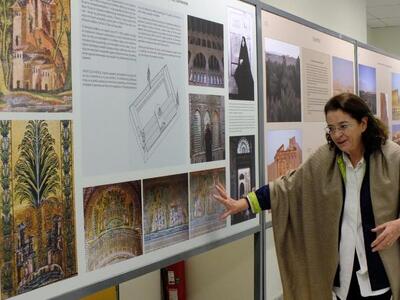 Παράλληλα, στο φουαγιέ του ΣΠΚ, διοργανώθηκε ομότιτλη έκθεση φωτογραφίας, με χαρτογραφικό και εικονογραφικό υλικό από το Αρχείο της Πολιτιστικής Εταιρείας Πανόραμα (ΑΠΑΝ, http://www.apan.gr). Η ίδια η Μαριάννα Κορομηλά την Κυριακή το πρωί, 24/1/2015, και αφού το συνέδριο είχε πλέον ολοκληρώσει τις εργασίες του, υποδέχτηκε τους επισκέπτες στον χώρο της έκθεσης, ταξιδεύοντάς τους στην άλλοτε αχανή επικράτεια των Μακεδόνων που ξεκινούσε από τη Μεσόγειο και έφτανε μέχρι τον Ινδό ποταμό, σε τόπους και μνημεία που πιθανόν να μην υπάρχουν πια. Οι θεοί και οι λαοί, οι κατακτητές, οι πόλεις και η έρημος, τα ιερά, οι ναοί, πολύβουες κοσμοπολίτικες πρωτεύουσες, καστρομονάστηρα, ελληνορωμαϊκά θέατρα και ωδεία, ένα από τα καλύτερα ψηφιδωτά σύνολα της ανατολικής Μεσογείου, οι αλιείς της πορφύρας και οι έμποροι της Φοινίκης, οι Βεδουίνοι και οι Δρούζοι, η επαναστάτισσα βασίλισσα της ερήμου Ζημοβία… Μεγάλο μέρος της έκθεσης είναι αφιερωμένο στο Χαλέπι, το μεγαλύτερο αστικό κέντρο της Ανατολής, το μαρτυρικό Χαλέπι.