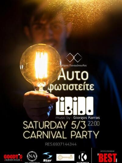Oποτε ολα ετοιμα! Ο Χαρης Παναγοπουλος σε συνεργασια με το Cafe Bar Libido ειναι ετοιμοι να υποδεχτουν το πιο φωτεινο παρτυ του καρναβαλιου!
