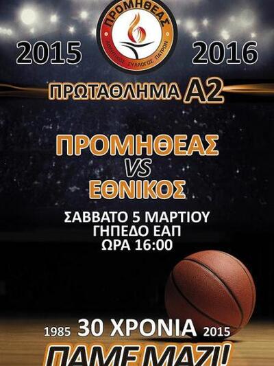 Το Σάββατο 5 Μαρτίου στις 4 το απόγευμα στο γήπεδο της ΕΑΠ θα πραγματοποιηθεί το μεγάλο παιχνίδι με τον Εθνικό Πειραιώς και τον Προμηθέα Πατρών.