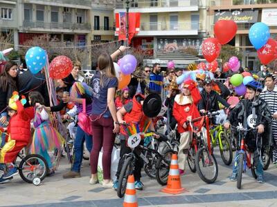 Τα παιδιά με τα ποδήλατά τους και την καρναβαλική αμφίεση της ομάδας έδωσαν τον καλύτερο εαυτό τους και χάρηκαν με την ψυχή τους συμμετέχοντας σε παιχνίδια, διαγωνισμούς και δραστηριότητες με τα ποδήλατά τους, που έβγαζαν κέφι, γέλιο και αισιοδοξία. Οι μικροί κλήθηκαν να διαγωνιστούν και να δείξουν τις δεξιότητές τους γεμίζοντας με χρώματα, χαμόγελα, χαρούμενες διαθέσεις, καλλιτεχνικές και καρναβαλικές αμφιέσεις, μπαλόνια την πλατεία, που σε συνδυασμό με τις κατασκευές του Καρναβαλιού των Μικρών και βέβαια με την ηλιόλουστη μέρα μεταμόρφωσαν την πλατεία σε έναν εκτεταμένο γεμάτο φως και χαρά καρναβαλικό παιδότοπο.