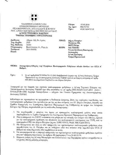 Το thebest.gr έχει στη διάθεσή του το έγγραφο προς το Δήμο το οποίο επικαλείται ο Γ.Γ. της Αποκεντρωμένης. Η εν λόγω απάντηση, που φέρει ημερομηνία 3-3-2016, περιλαμβάνει συνολικά 9 σημεία που χρήζουν διευκρινήσεων με πιο σημαντικό εκείνο της απουσίας από τον φάκελο «εγκεκριμένης κυκλοφοριακής μελέτης» στην οποία να περιλαμβάνεται το σχέδιο εφαρμογής του συστήματος χρονικού περιορισμούς της στάθμευσης (ελεγχόμενη στάθμευση).