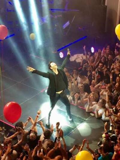 Εμφανίστηκε δύο φορές στην σκηνή, την πρώτη στις 11.30 περίπου. Πριν εμφανιστεί επί σκηνής το πρόγραμμα "κράτησαν" τρεις συνεργάτες του.