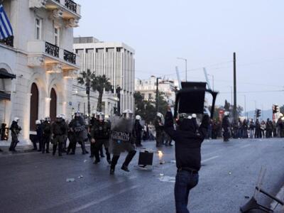 22.02: Τέσσερις τραυματίες από τις συγκρούσεις με τα ΜΑΤ, στο Σύνταγμα. Στο σημείο έχει φτάσει ασθενοφόρο.