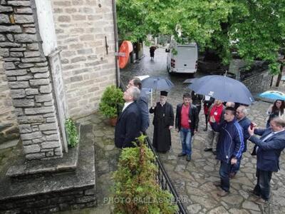 Στα πλαίσια της συμμετοχής του στο φόρουμ αυτό Μνήμης και Παιδείας του Λεχόβου, ο Δήμαρχος Καλαβρύτων, επισκέφθηκε, το ιστορικό Εθνολογικό και Λαογραφικό Μουσείο του Λεχόβου, τον ιστορικό Ιερό Ναό του Αγίου Δημητρίου, όπου παρακολούθησε τον αρχιερατικό εσπερινό που τέλεσε ο Σεβασμιότατος Μητροπολίτης Καστοριάς κ. Σεραφείμ, ο οποίος είχε φέρει στον Ιερό, αυτό, Ναό και τμήμα του Ιερού Τιμίου Ξύλου και κατέθεσε στεφάνι μνήμης και σεβασμού στο μνημείο των αγωνιστών της Εθνικής αντίστασης και εκτελεσθέντων, στο Μαρτυρικό Λέχοβο.