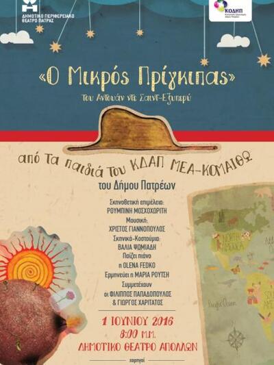 Τα παιδιά του ΚΔΑΠ ΜΕΑ ΚΟΜΑΙΘΩ του Δήμου Πατρέων παρουσιάζουν τον Μικρό Πρίγκιπα του Αντουάν ντε Σαιντ- Εξυπερύ στο Δημοτικό Θέατρο Απόλλων, την Τετάρτη 1 Ιουνίου και ώρα 20.00.