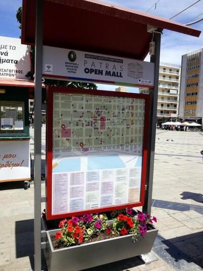 Το Ανοικτό Μall περικλείεται από τις οδούς Ζαΐμη. Αλ.Υψηλάντου, Τσαμαδού και Αγίου Ανδρέου. Στις βασικές εισόδους όπως και στα 129 καταστήματα θα υπάρχει ειδική σήμανση.