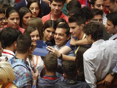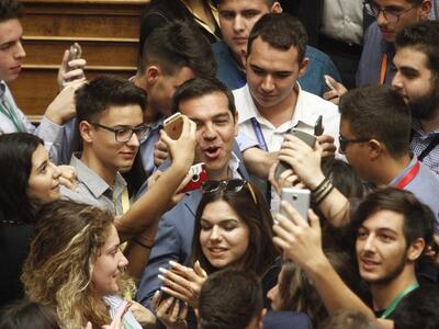 Κυριολεκτικά...καβάλησαν τον πρωθυπουργό για να φωτογραφηθούν μαζί του