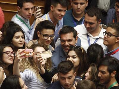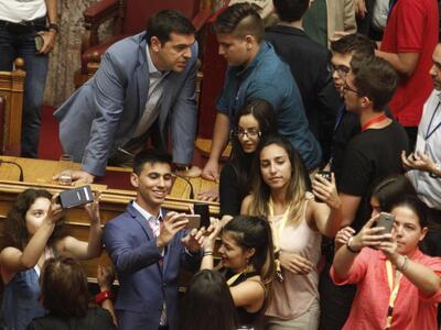 Ο πρωθυπουργός, με εμφανώς καλή διάθεση, συνομίλησε με τους μαθητές που συμμετέχουν στη Βουλή των Εφήβων. Ο φωτογραφικός φακός κατέγραψε και τις στιγμές που ο πρωθυπουργός φωτογραφίζεται με τους μαθητές, οι οποίοι έσπευσαν να τον συναντήσουν.