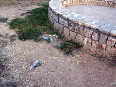 Πιο δίπλα το πράσινο (γκαζόν) έχει ξεραθεί ενώ σε κάποια άλλα σημεία αντίθετα, το πράσινο δεν έχει περιποιηθεί και έχει θεριέψει. Πεταμένα μπουκαλάκια θα βρει ο διαβάτης και σε άλλους χώρους όπως στα παρτέρια και στα σημεία πρασίνου της πλατείας.